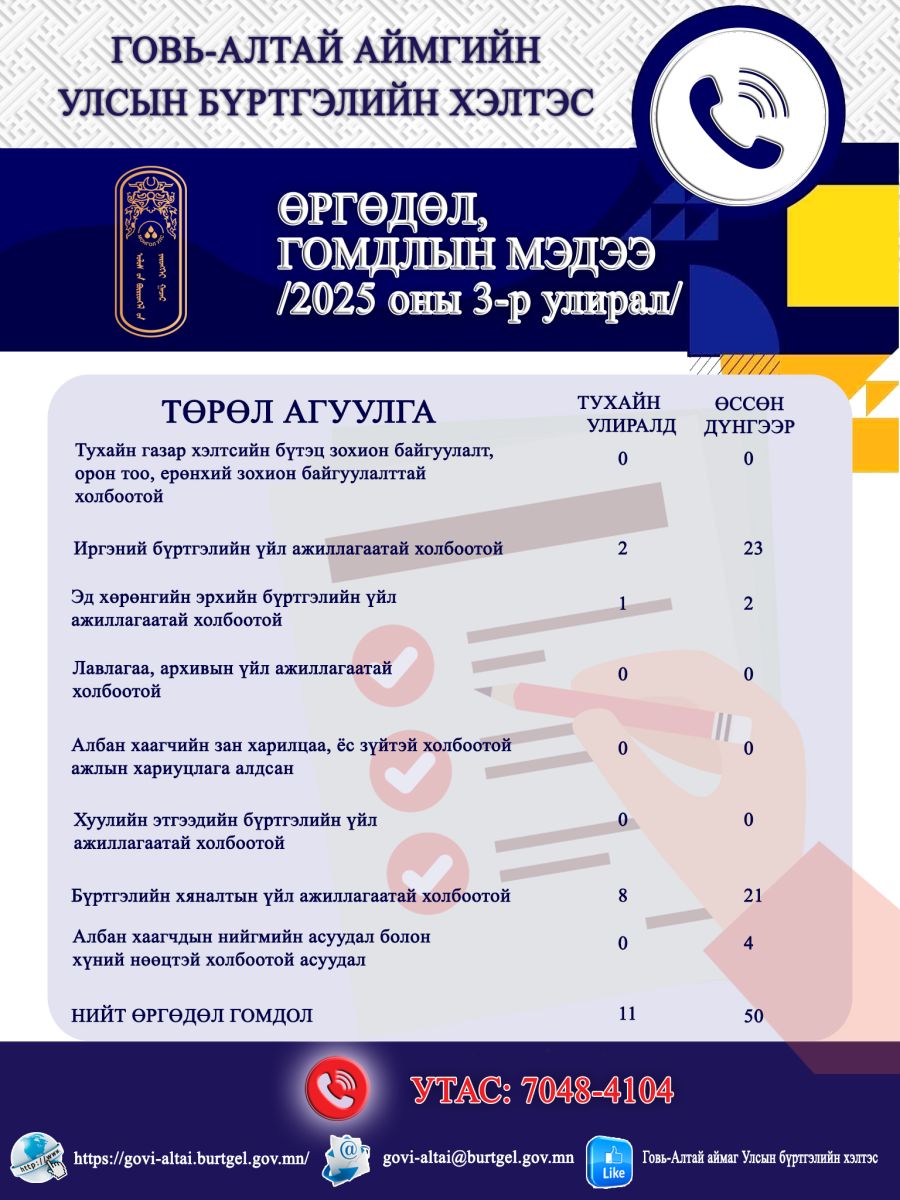 2025 ОНЫ "ӨРГӨДӨЛ ГОМДЛЫН МЭДЭЭ" 3-Р УЛИРАЛ